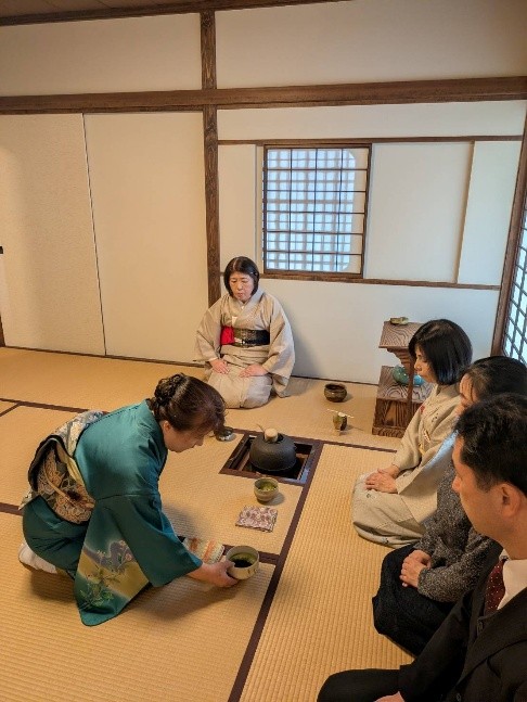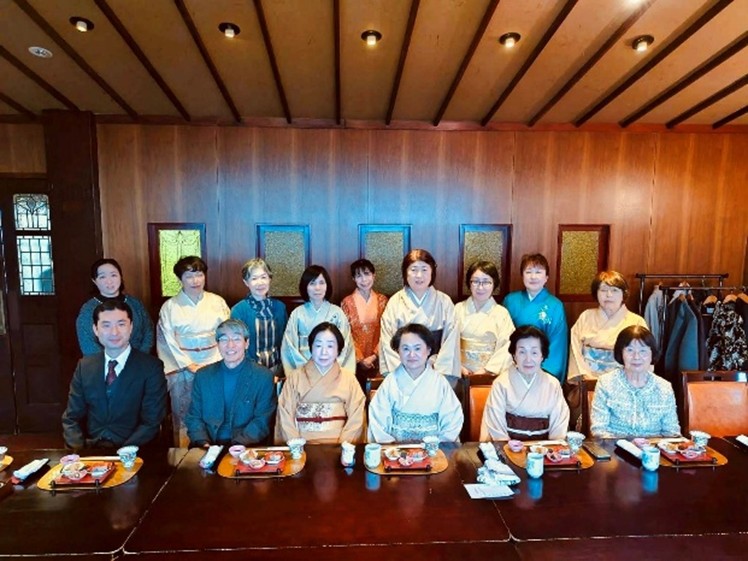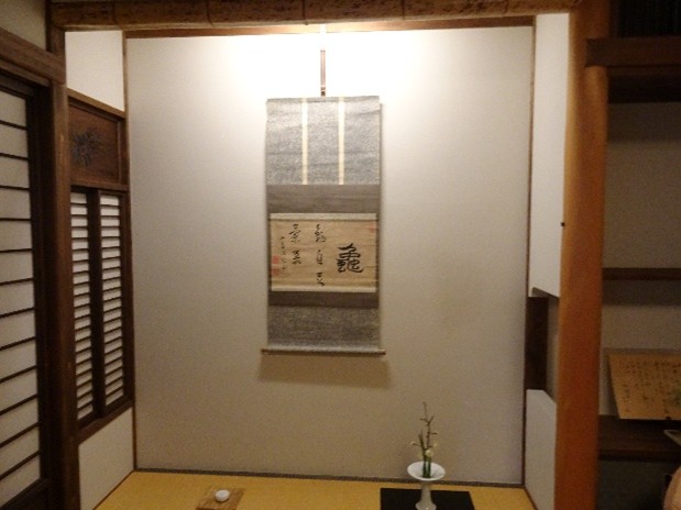 大寒に入り、寒さが身に染みる令和8年1月25日(日)に長崎支部松和会の初釜を佐々木支部長宅にて行いました。初釜は一年最初の行事で、参加者15名の方々と久々に顔を合わせることができました。 お正月にふさわしい床の設えで、掛け物は観中公10歳の時にお書きになられた「亀」。ご宗家様から頂きました有田焼の花入れには水仙と白梅が入り、ほのかな香りが漂っていました。 佐々木支部長のご挨拶の後、正月恒例の猿曳き棚で濃茶の点前をさせて頂きました。年に一度のお点前は稽古不足と緊張で戸惑うところがあり、今年もお稽古に励まなければと気持ちを新たに致しました。お正月の花びら餅や薄茶を頂き、場所を替えて新年会では皆様と和やかなひとときを過ごしました。 |