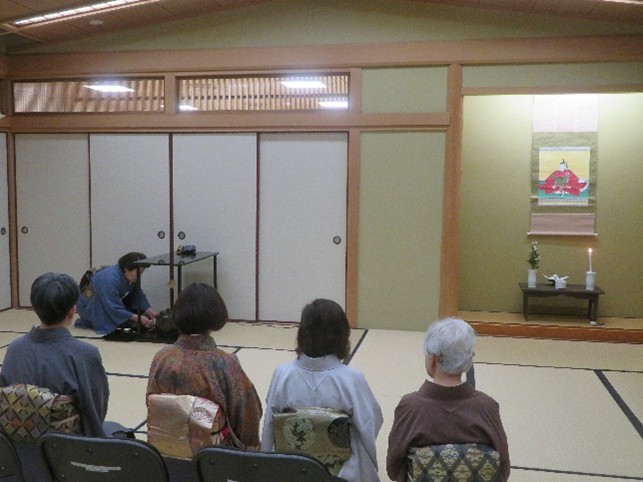 | 午後からは、不時点前と雪吹点前の勉強会を行いました。川﨑支部長より丁寧なご指導を頂き、茶道の奥深さに改めて触れることが出来、大変実り多い時間となりました。 |