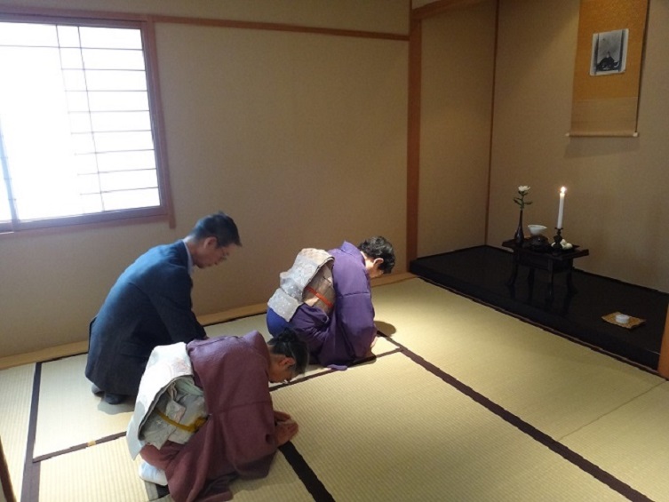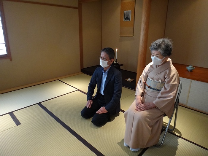 4名という少人数でしたが、皆で心を込めて、鎮信公に思いを馳せました。 お献茶の後、お下がりの上用饅頭で薄茶をいただき、秋の一時を楽しみながら、一服のお茶を通して皆が集い、穏やかな気持ちで過ごせましたことを、嬉しく思いました。 |